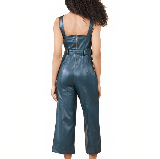 Women's Overalls Leather Jumpsuit In Emerald Green