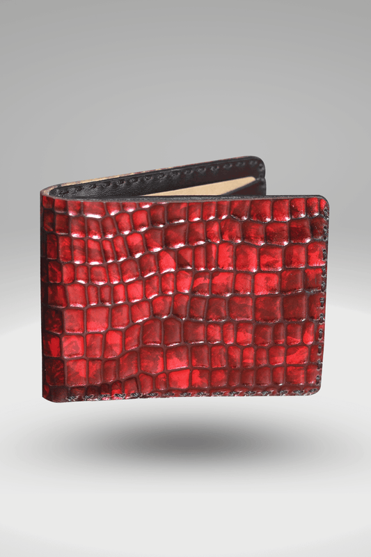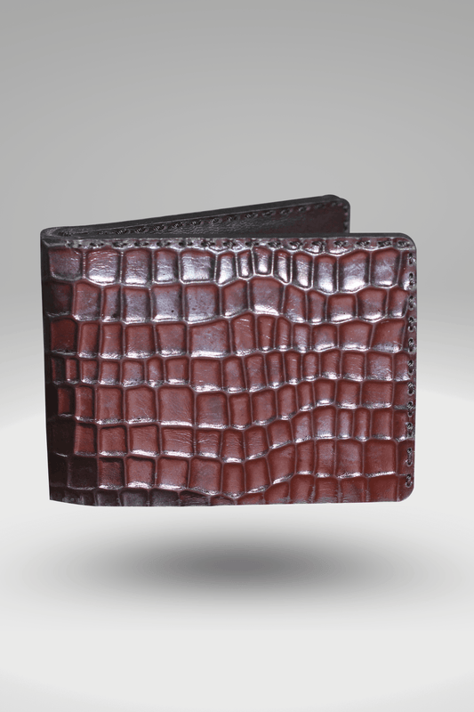 Men's Cubic Crocodile Textured Genuine Cowhide Leather Wallet In Maroon | Bifold Hand-Made Leather Mini Wallet