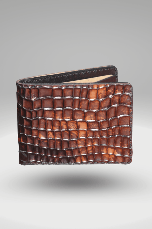 Men's Cubic Crocodile Textured Genuine Cowhide Leather Wallet In Brown/Black | Bifold Hand-Made Leather Mini Wallet