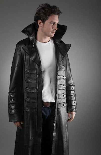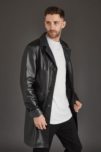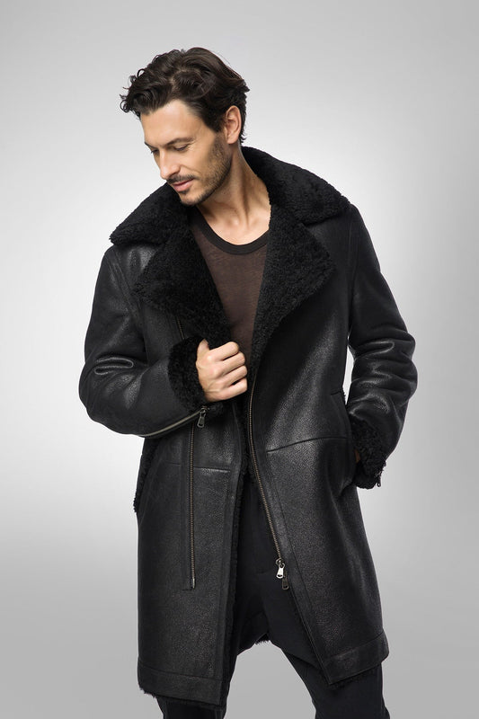Men's Double Sided Long Fur Shearling Leather Coat In Black