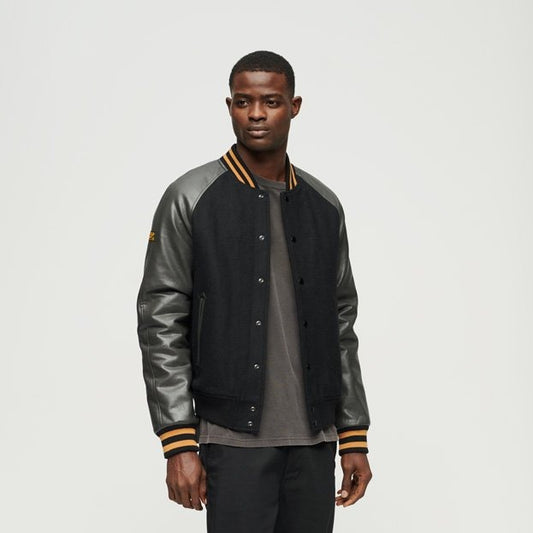 Men's B7 Bomber Sheepskin Leather Coat In Black With Oversized Collar