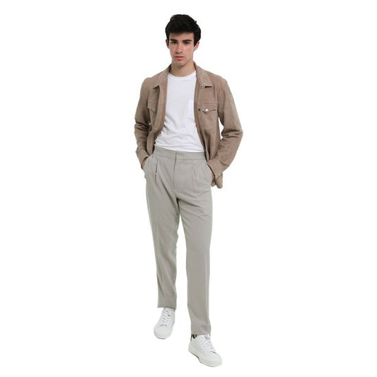 Men's Full Sleeve Suede Leather Shirt In Cream