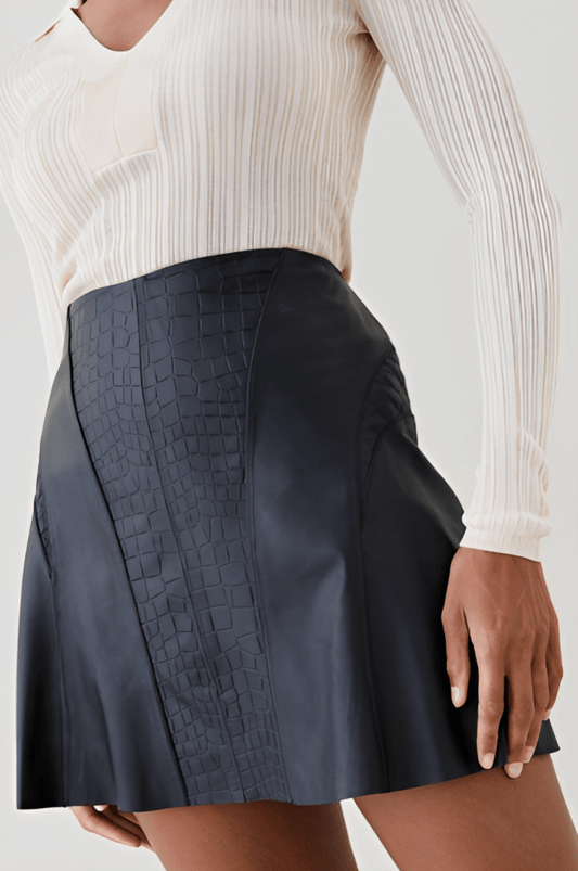 Women's Croc Texture Leather A-line Mini Skirt In Black