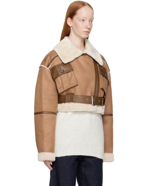 Women's Cropped Shearling Leather Jacket In Brown
