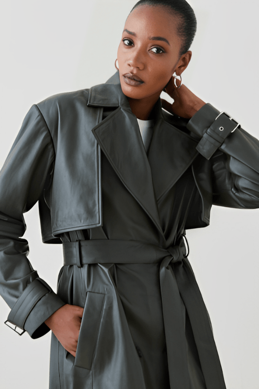 Women's Leather Trench Coat In Olive