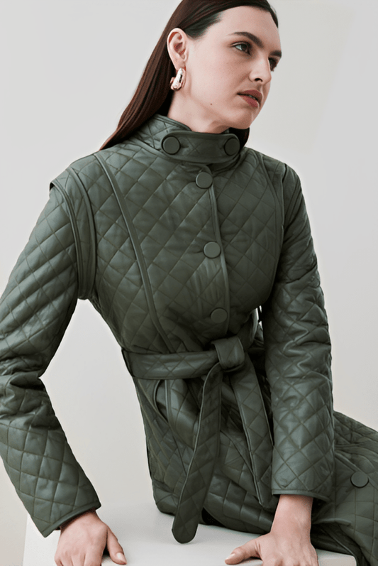 Women's Quilted Leather Trench Coat In Olive
