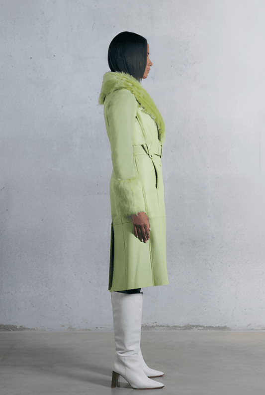 Women's Shearling Leather Trench Coat In Lime Green